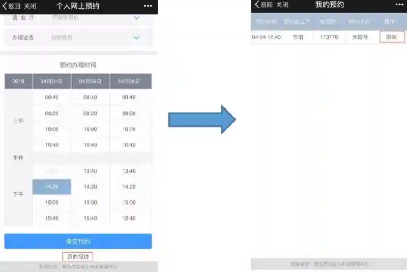 温馨提示:预约办理业务实行实名制,不得代为预约。请务必在预约办理时间当天凭“取号验证码”提前到叫号机换取预约办理号码,否则预约作废!