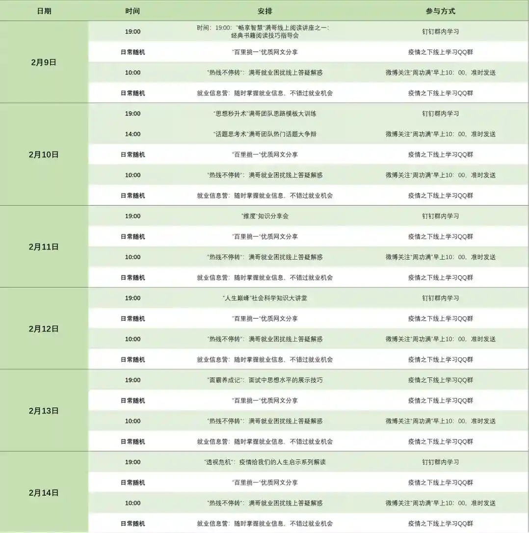 最近,周功满开始意识到了网络的巨大力量,尤其是这次疫情之下,他开始借助网络来推动自己的公益事业。疫情期间,周功满共开设讲座21场,听课人数从刚刚开始的每场2000多人,渐渐扩大到后来每场30000人左右,包括本次受教育厅邀请开设的《教师编制备考技巧》讲座,听课人数也有17000多人。21场讲座的总听课人次数接近30万,学生们纷纷表示“满哥”的讲座让他们受益匪浅,在关键时刻给他们缕清了思路。