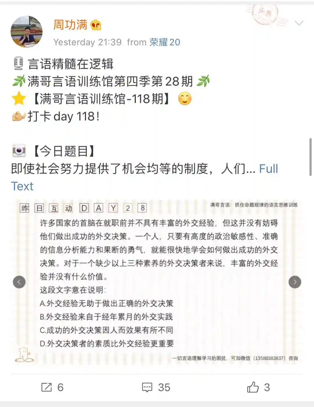 第二方面的训练,需要在具体的解题中传授,有兴趣的同学不妨去“周功满”微博参加“言语训练馆”等公益训练项目来提升解题能力;