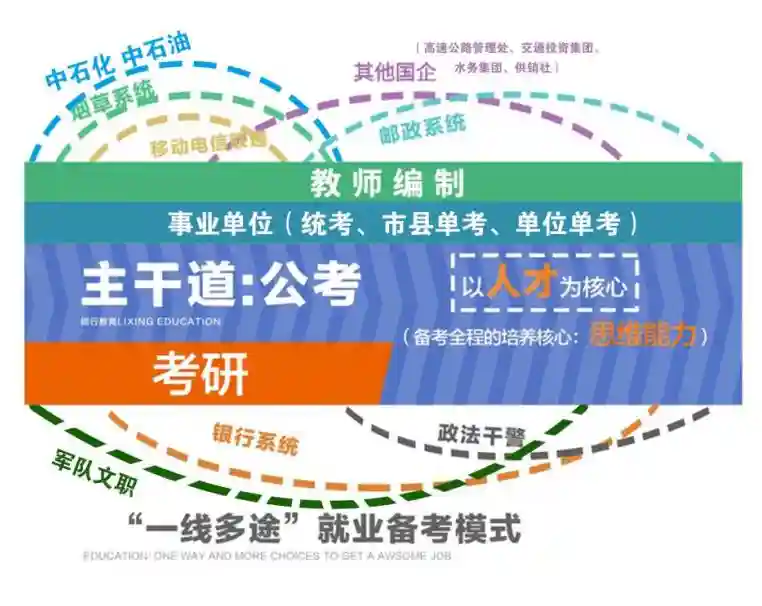 这意味着:你只要在公务员主干道上备考,你就等于同时在准备事业单位、教师招聘、大中型国企、运营商、军队文职、高校辅导员、邮政系统、各类银行,随时你都可以找到你想都不曾想过的高质量就业!