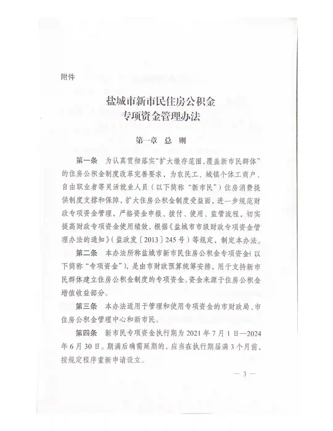 关于印发《盐城市新市民住房公积金专项资金管理办法》的通知