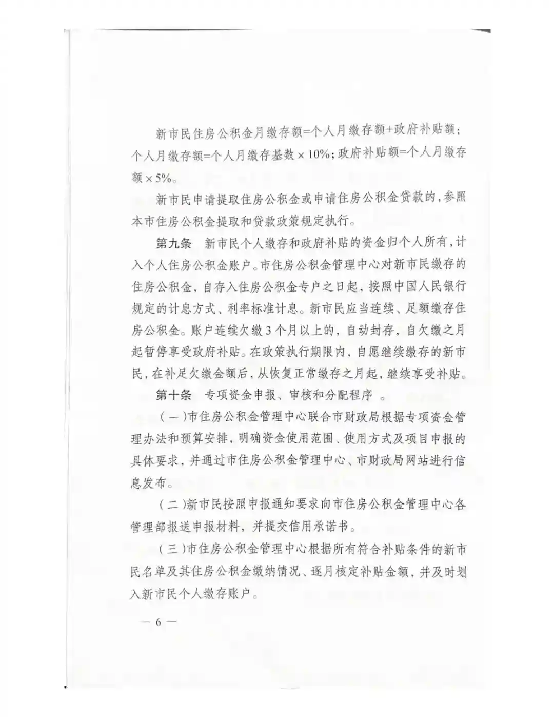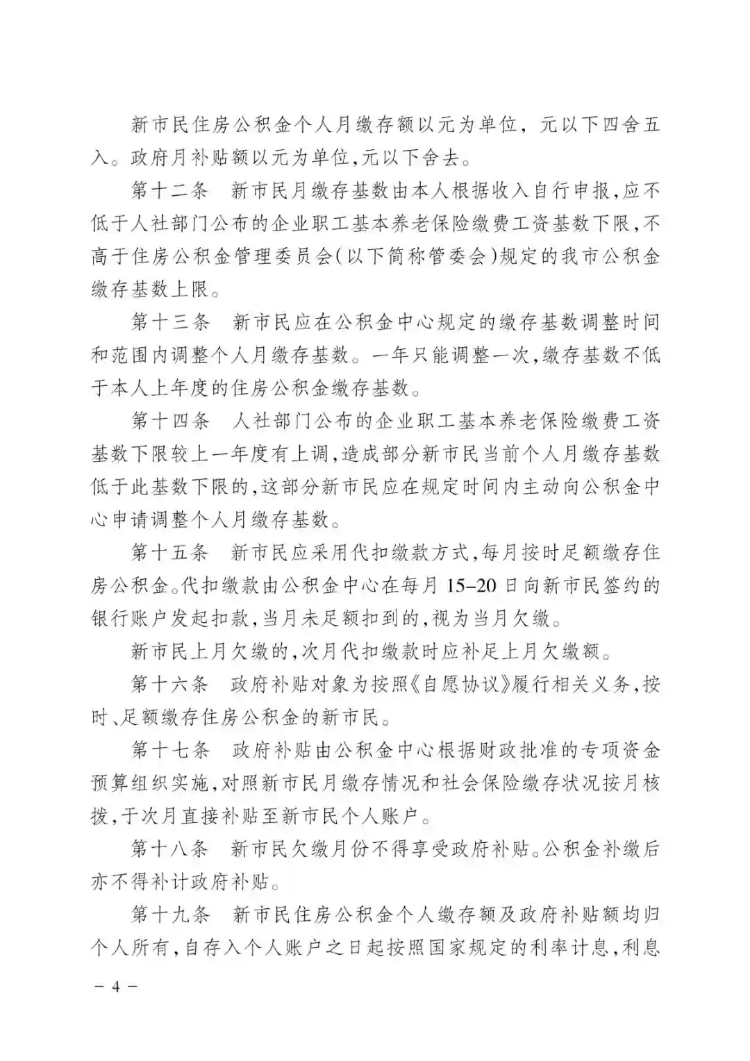 3.补贴标准。按新市民个人月缴存额的5%补贴,最高不超过100元,直接打入个人住房公积金账户。