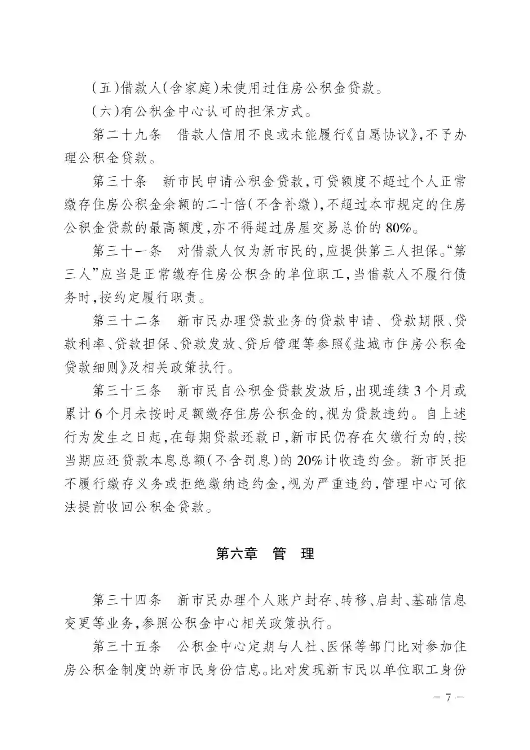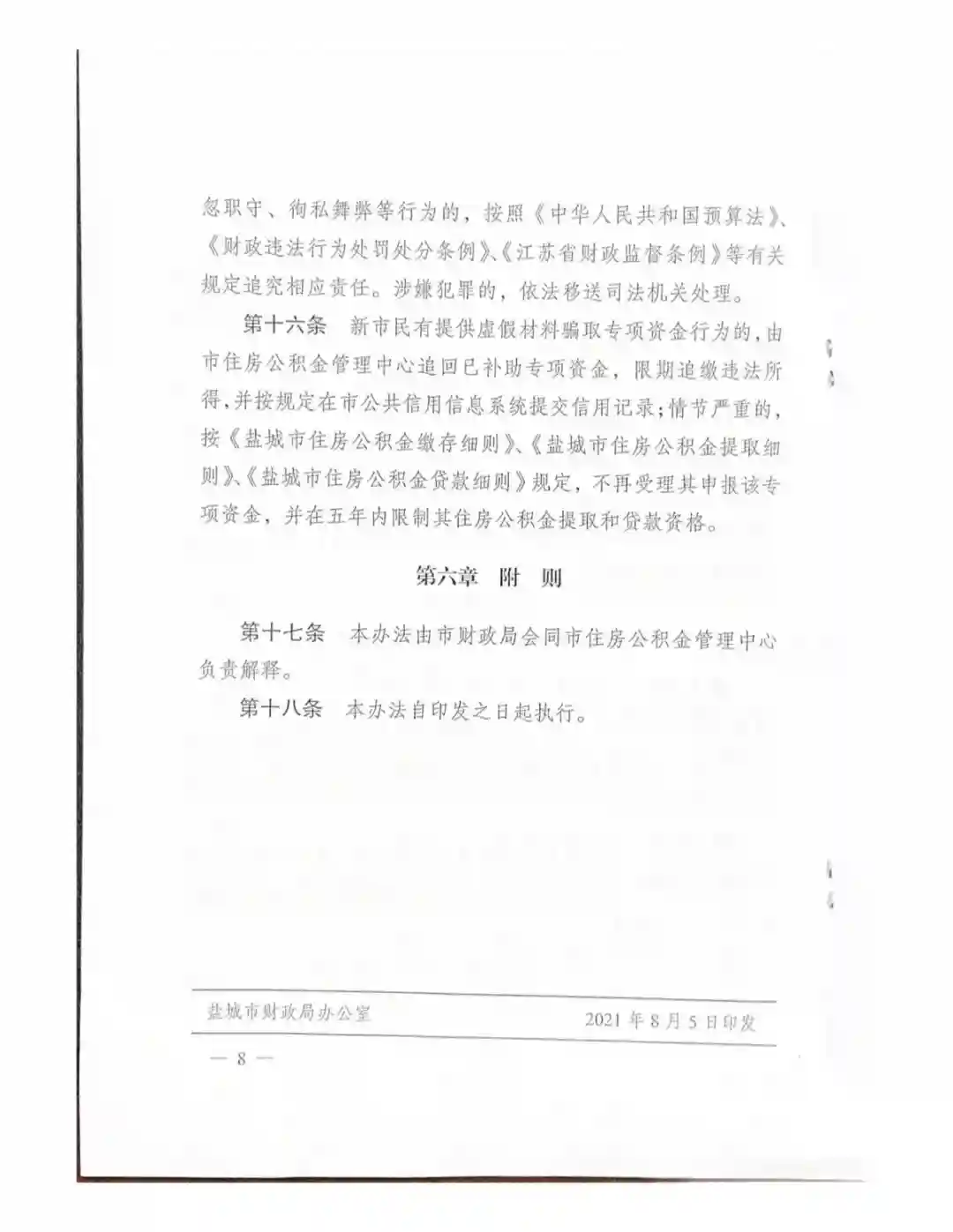 3.限制提贷。新市民有提供虚假材料骗取专项资金行为,情节严重的,按《盐城市住房公积金缴存细则》、《盐城市住房公积金提取细则》、《盐城市住房公积金贷款细则》规定,在五年内限制其住房公积金提取和贷款资格,不再受理其申报该专项资金。