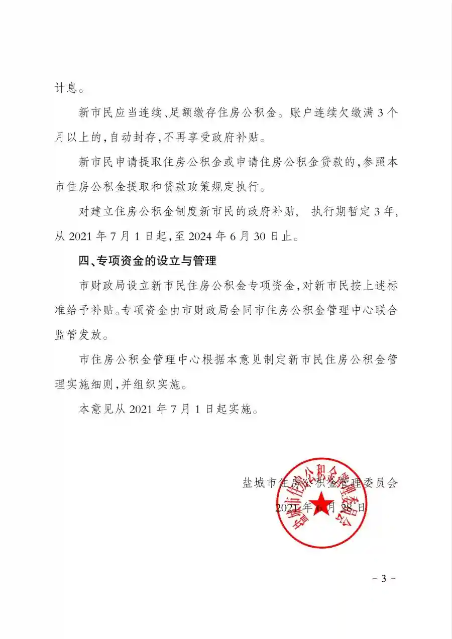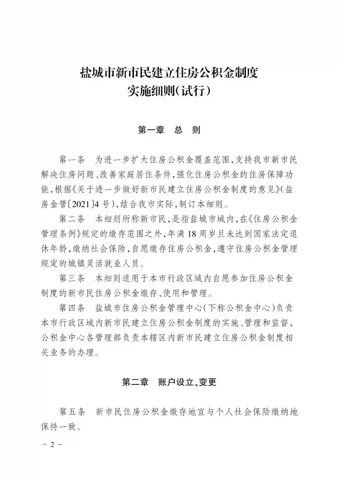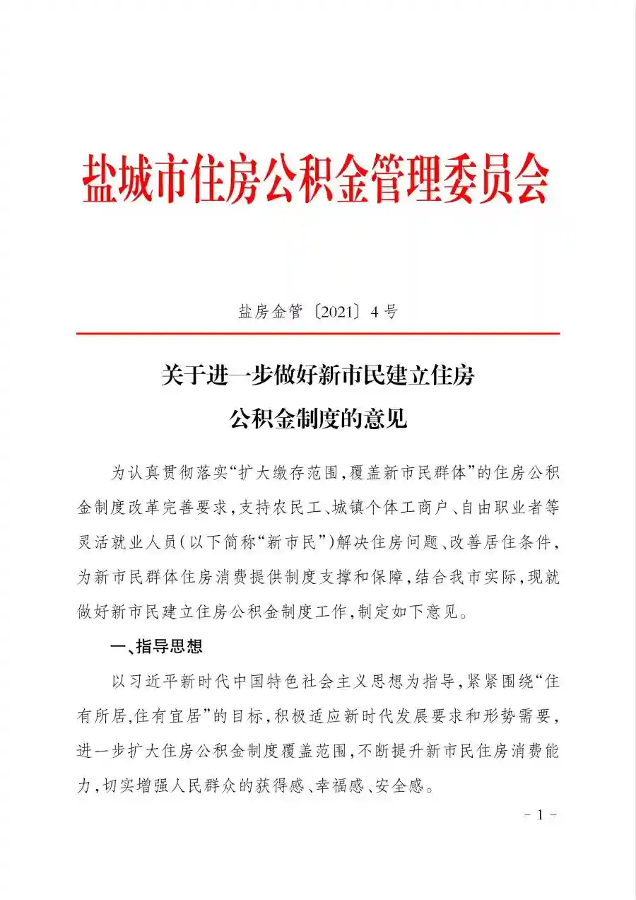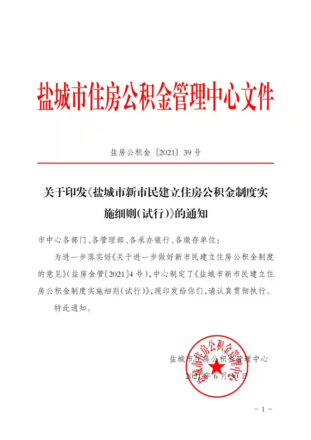 关于印发《盐城市新市民建立住房公积金制度实施细则(试行)》的通知