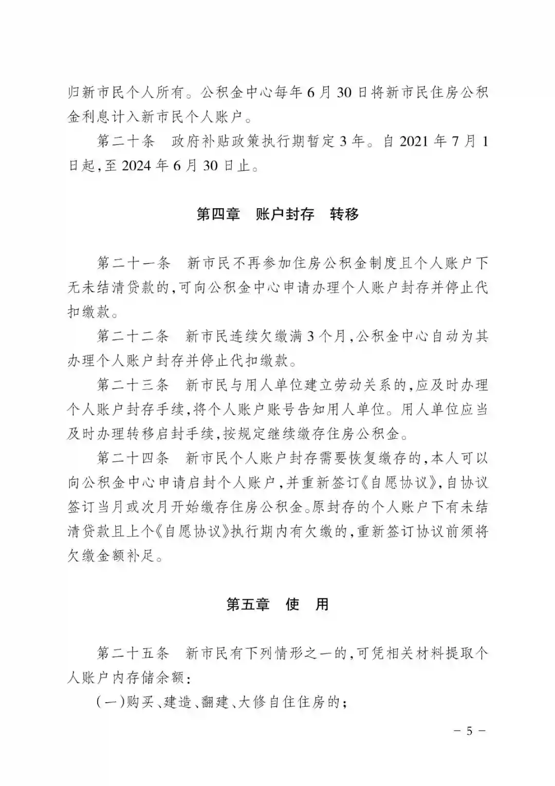6.享受待遇。新市民住房公积金账户的资金归个人所有,新市民申请提取住房公积金或申请住房公积金贷款的,具体参照本市住房公积金提取和贷款政策规定执行。