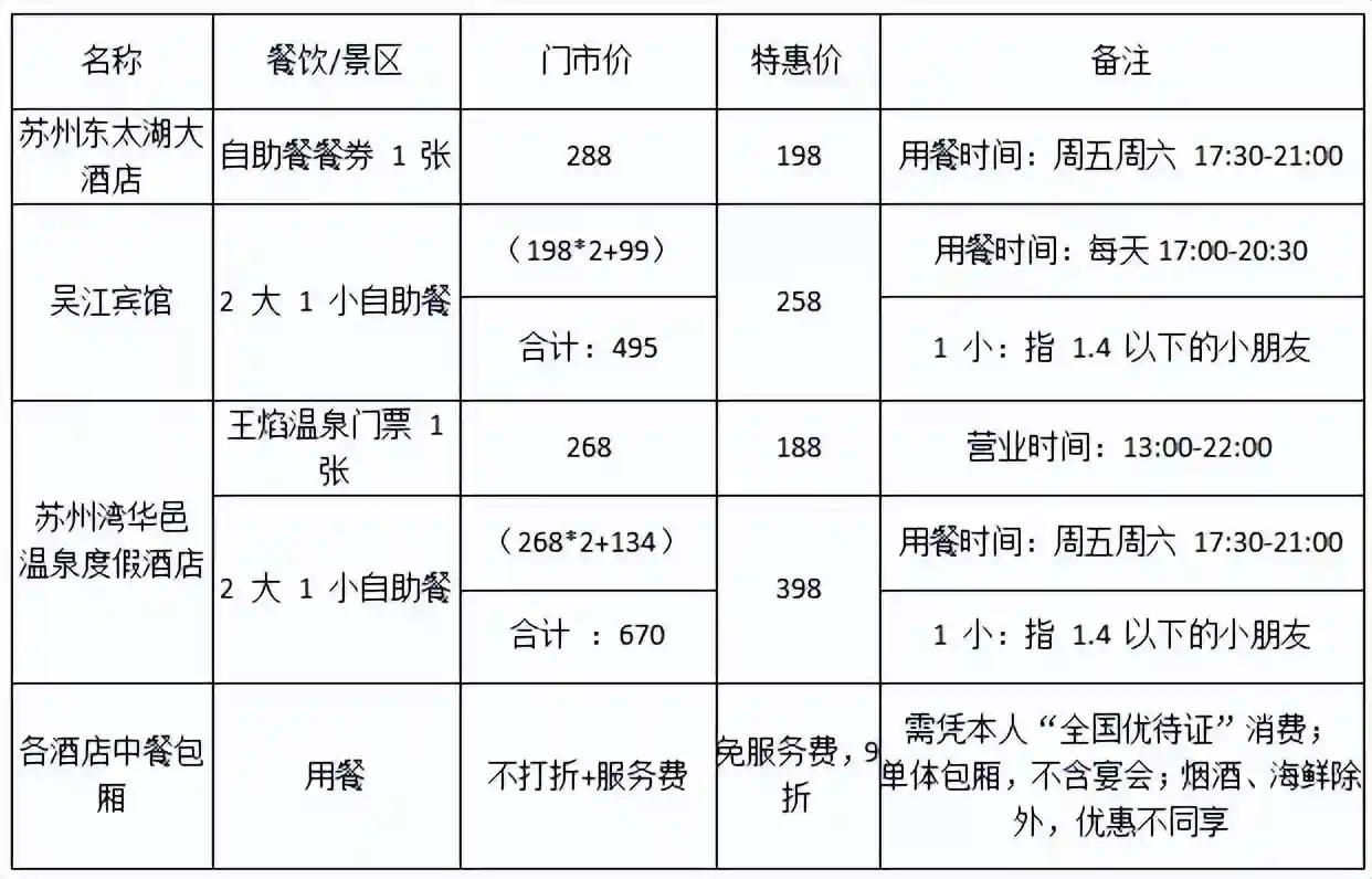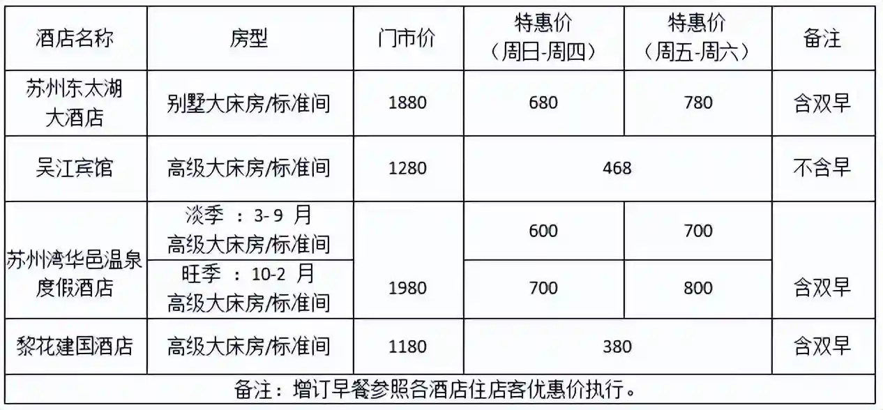 1.住宿优惠(单位:人民币元/间夜)
