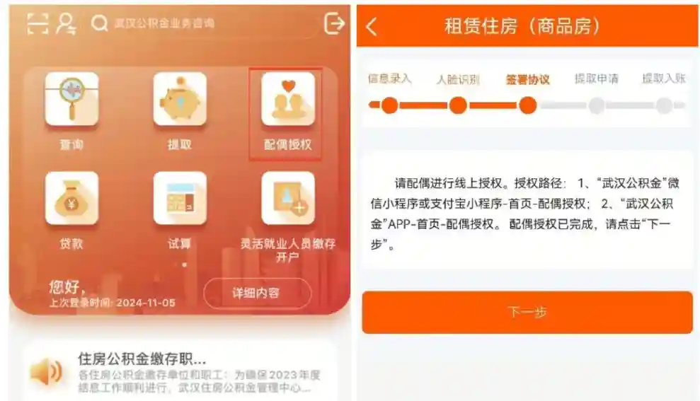 职工及配偶一个年度内租房和购买提取只能二选一,租房首次办理是“租房提取”,再次办理时选“租房续办”。