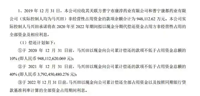 2025年年报中,康美药业披露的马兴田偿还资金计划。
